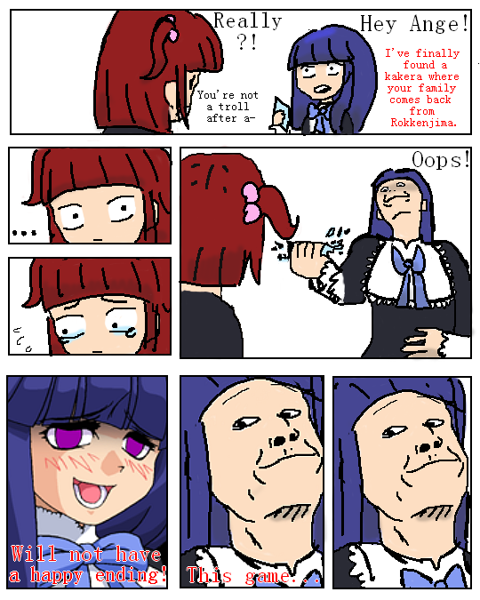Тогда по персонажам 1. Троллкастел 2. Батора/Эрика 3. Беатрича/Еватрича 4. Лямбда/Уиллард 5. Старый инцестофил/Роза/Мария/Кирие 6. Люцифер/Маммон/Дланор 7. Виргилия/Нацухи