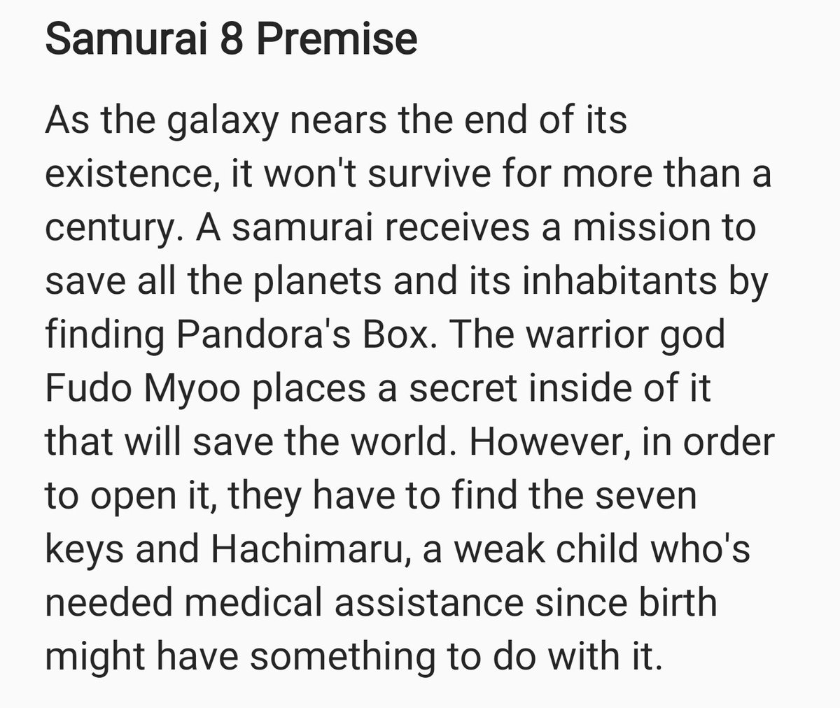 Манга называется - Samurai 8: Hachimaruden. Hachi - означает 8. Типо можно гадать,что это за отссылка такая,и строить теорий ))))