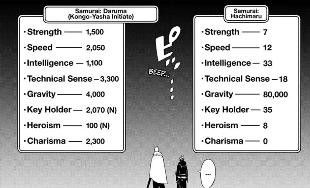Кишимото похоже сделал копирку,раз Хачимару обладает такими-же низкими статами,как и Наруто в свое время. У Наруто был лишь один высокий показатель - стамина(чакра). У Хачимару так-же,лишь один высокий показатель - гравитация.
