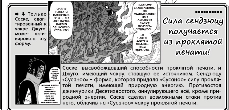 Цитата Cikоnio (  ) Слева сказано, что Саске принимает непосредственное участие в процессе создания этого Сусаноо, потому что он адаптивен к проклятой печати. То есть Рикудо обосрался и не смог отделить Саске от Сусано, что в принципе невозможно, ибо Сусано состоит из чакры Саске.