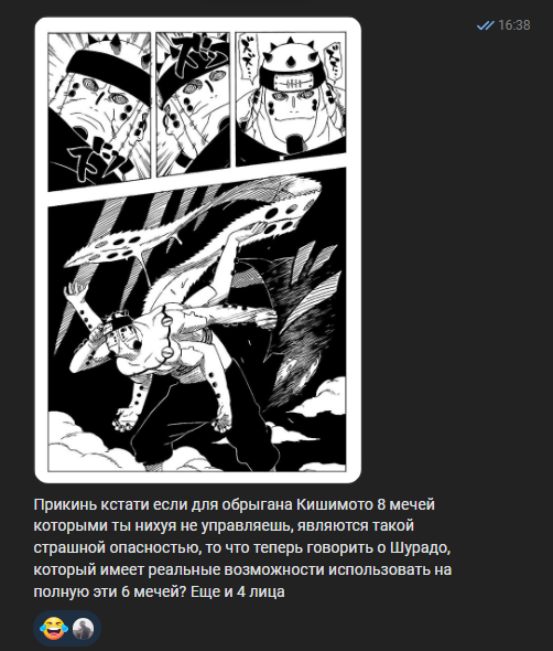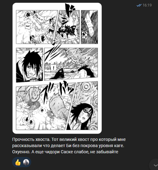 Ты сказал, что Джуго пересилил Саске. Что в итоге? В итоге Саске заблокировал удар Джуго без единой царапины. Т.е. ты пропизделся.