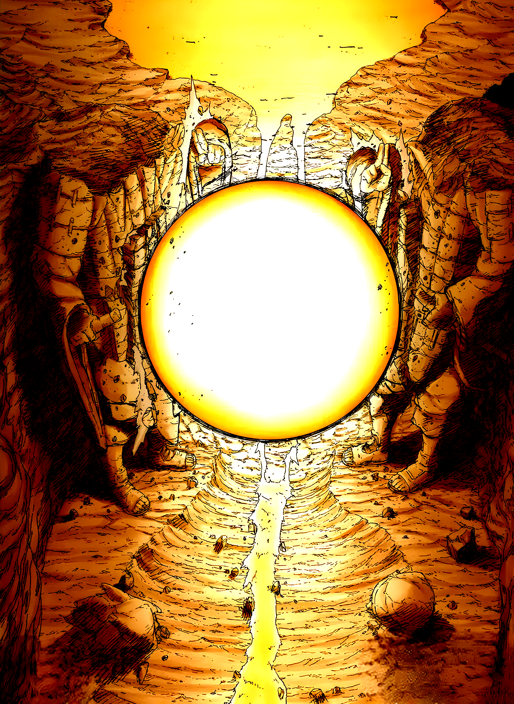 Команда - со стороны Господина Мадары. Наруто - у почтившего памятника Хаширамы.