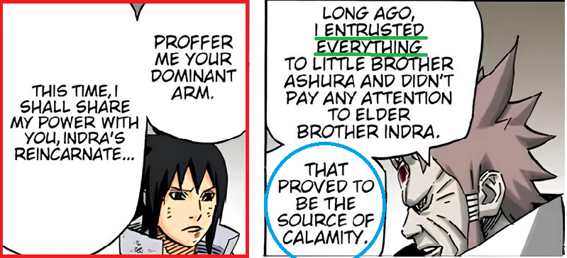 Хагоромо говорит, что доверил всё Ашуре. И это вызвало конфликты. Теперь он доверит что-то и Саске, чтобы конфликтов не было.