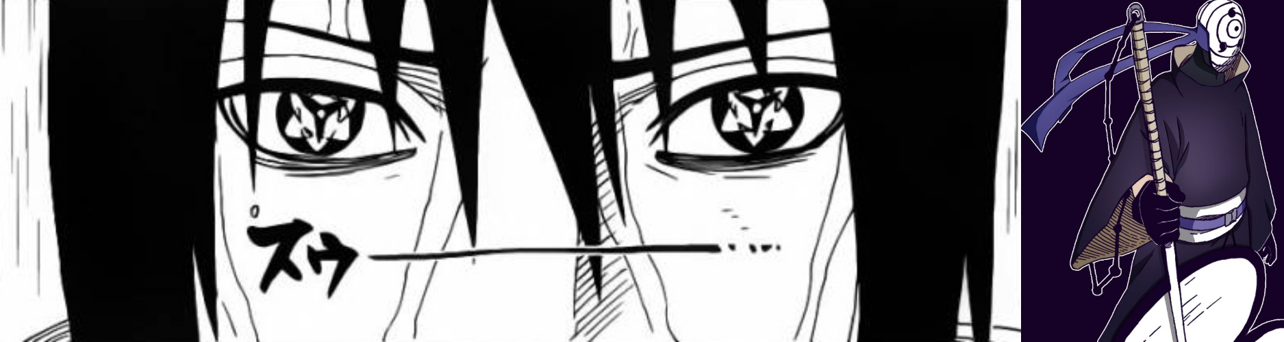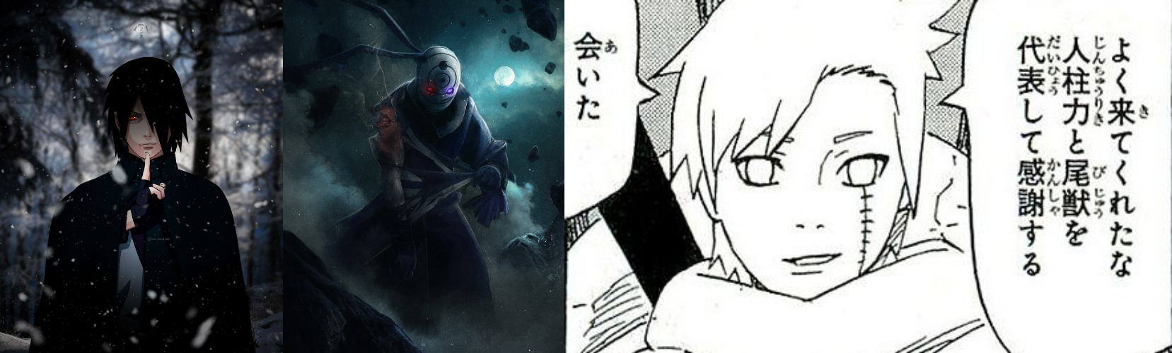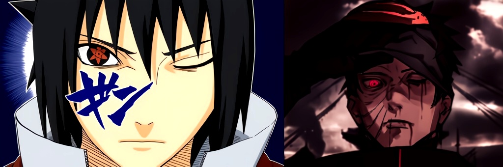 Внизу столкновение различных версий Саске и Обито.