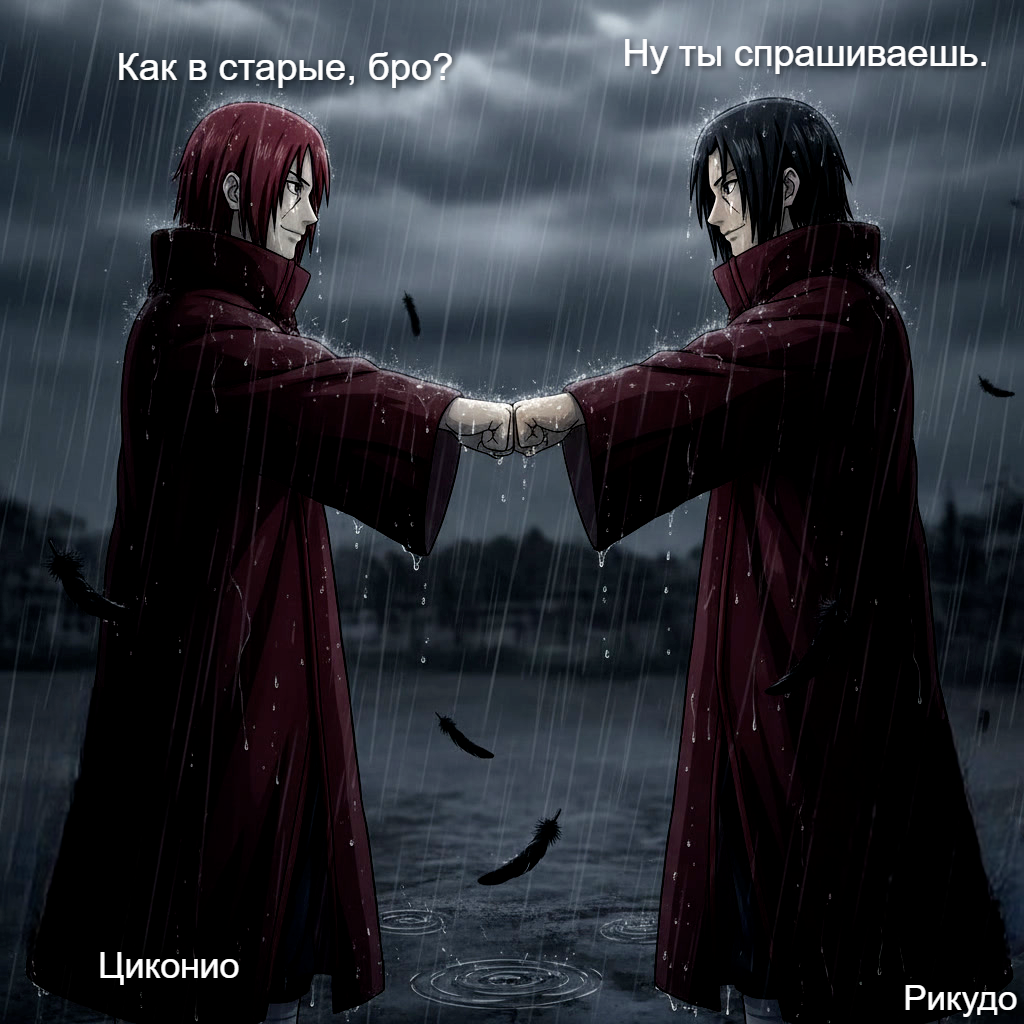 Нагато - как в ЭТ, только живой. В окружении всех призывов. Сразу с 3 лицами Шурадо, включил Дождь, на ментальной связи с Итачи. Превратил ноги в реактивки Шурадо.