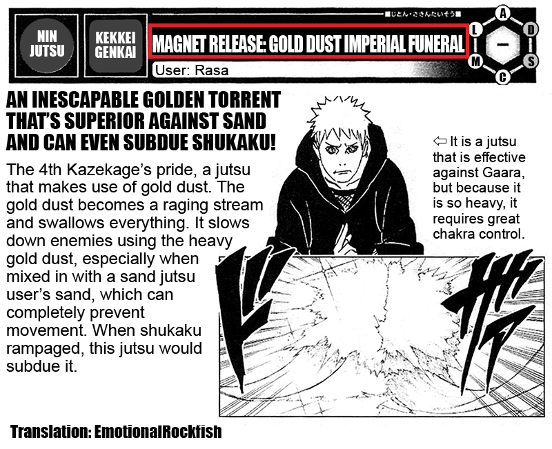 1. Скорость его песка (причём в порезанном состоянии Эдо Тенсей) равна скорости песка Гаары. Песка Гаары, который поспевает за быстрейшей атакой 4РКГ, Гильотиной, помогает держаться против массовых клонов Сусаноо Мадары и даже поранить Мадару 1РН СМ, откровенного мутанта, спидблицтера и сверхшиноби, также погребеть его в пирамиде и ещё, кстати, захватывать Генгецу, который клашился с нечестным и обходящим многие статы Муу.