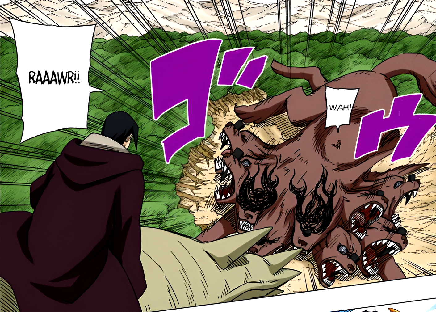 Единственное что тут играет в пользу Джи, то это то, что Итачи тут уже дохлый. Но Итачи даже это не помешало положить болт на овертрейнд Саске и сильнейшую технику Орыча при этом без намерения убить