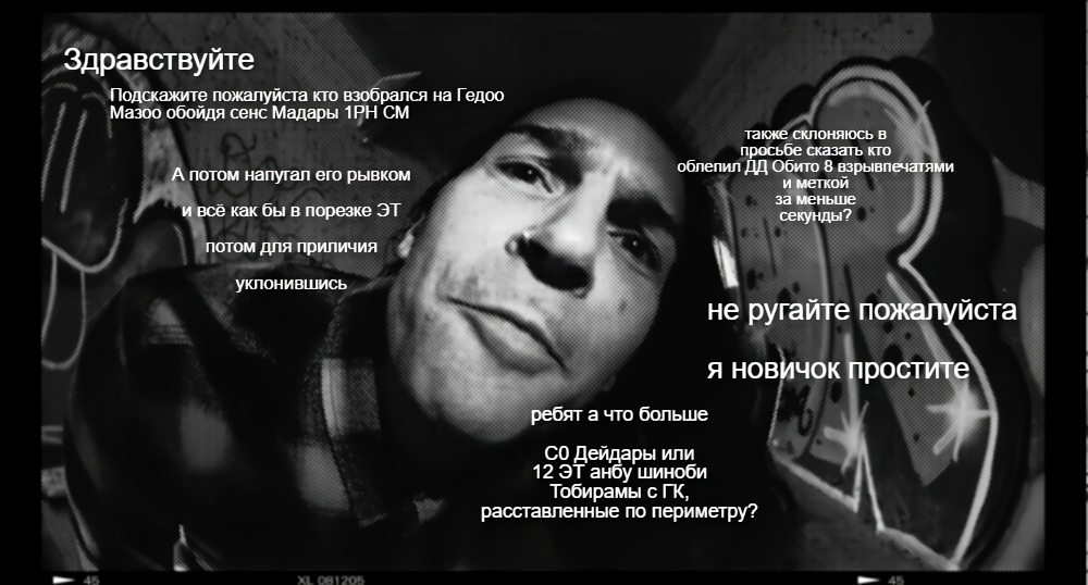 | Цитата Fell (  ) Можно сначала не полагаться на ГК, а так просто по фану с ними поиграться. Все равно оба бомжи. Вот меня поражают такие комментарии. ВВН Орыч уже фистингом унизил Тобираму. То есть бомж унизил твоего любимого персонажа по манге. Как же так, если Орочимару - бомж, а Тобирама - великий и мощный шиноби?