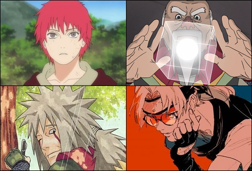 Джирая - 2. Ну тут комментарии излишни. Один из лучших персов манги. Сасори - 1. Вобщем то то плачевно все начиналось для него, так же и закончилось. Потерял родителей и чтобы хоть образы остались рядом с ним и уйти от одиночества, сделал куклы по их подобию, одновременно поехал головой с этой кукольной темой. В конечном итоге куклы родителей его и убили. Очень хорошо все обыграно в аниме, с соответствующим музыкальным сопровождением. На самом деле глубокий персонаж, хотя по началу так не кажется.