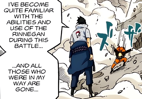 Саске сказал вдобавок Наруто: Я хорошо овладел правым глазом, подарком Рикудо Сеннина, Риннеганом: