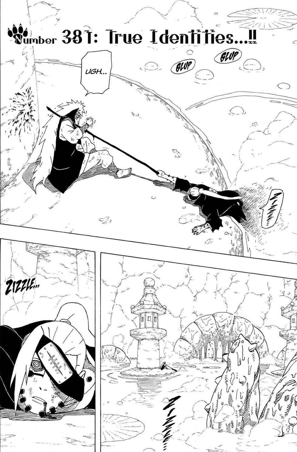 Автор чётко показал - Чикушодо шипит телом в воде, его повязка как символ последнего рывка спадает и всё это синхронно с ударом. То есть это всё произошло совсем недавно, секунду назад - Чикушодо попал в барьер и задел Джирайю. А потом потерял связь с Нагато, сильнейшим в Акацуки.