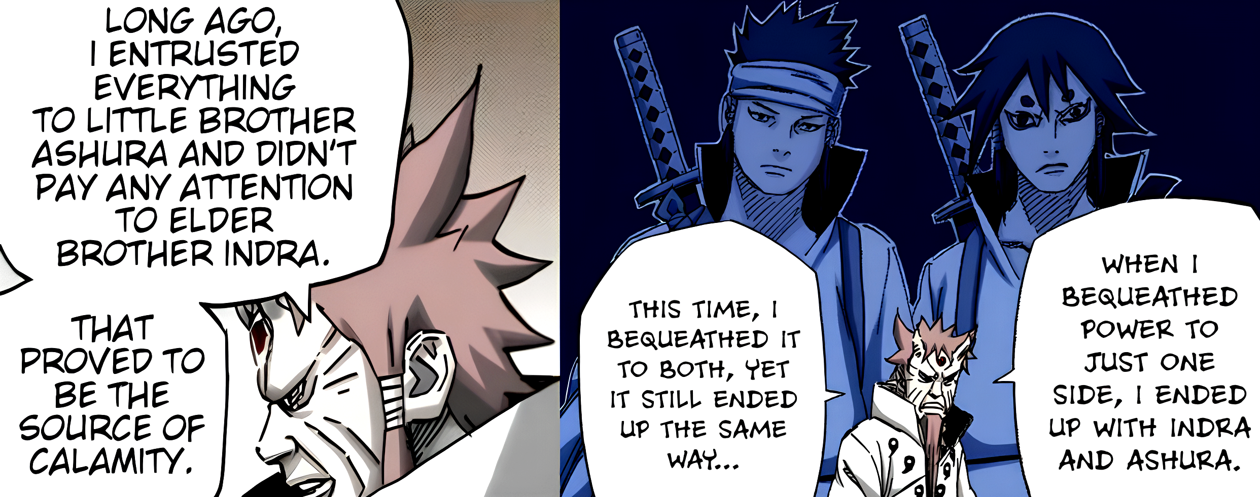 Ведь Хагоромо любил Ашуру, искренне сын и Индра надвис над миром. Мощь РСМа Ашуры или дополнительные силы (может быть, сила хвостатых или другое) в нём должна быть больше - по отдельности, чем в Наруто и Саске.