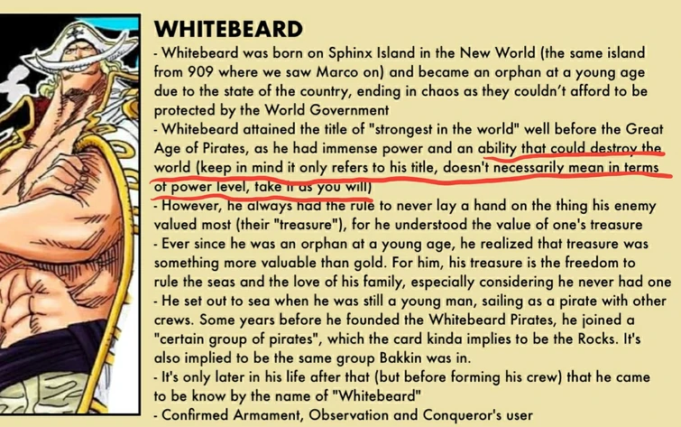 Цитата ТОBITO_OBITO (  ) [size=15]Белоус завоевал титул "сильнейший в мире" задолго до Великой эры пиратов, поскольку он обладал огромной силой и способностями, которые могли уничтожить [/size=15]