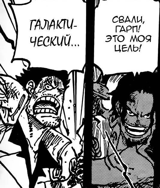 1) Когда Гарп не выкладывается на 100% (как до против Иму), Роджер может его опередить. Когда Гарп вкладывает всё, что у него есть (как против Иму-Земли) - Голу только и сидеть с такой физиономией на фоне прекрасного Гарпа: