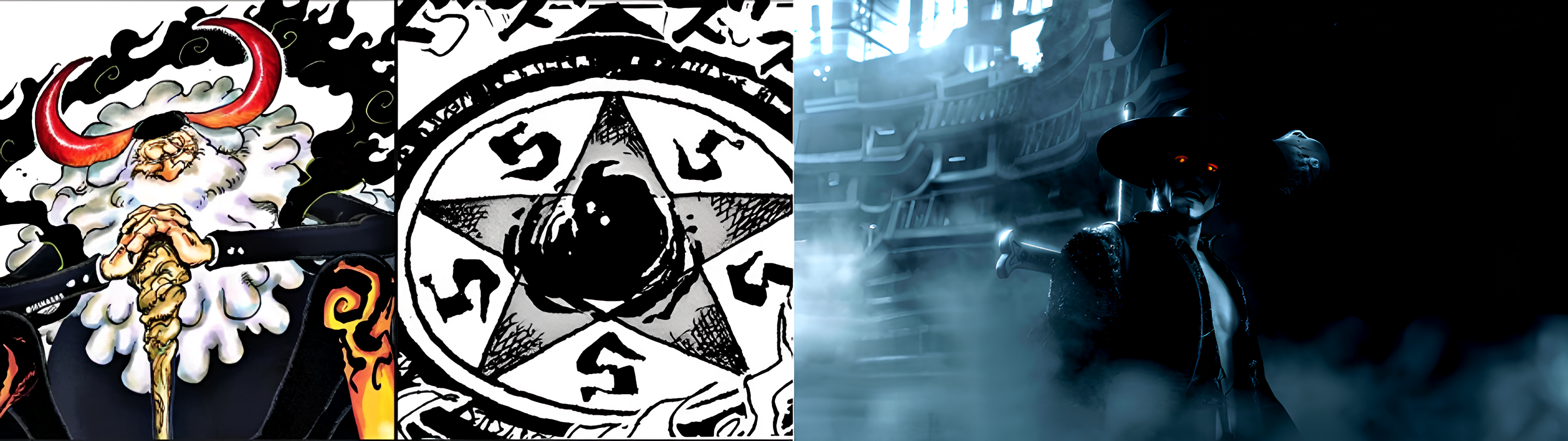 3) Рейли, Габан, Зоро из битвы с Луччи. Рейли старый, Габан молодой.